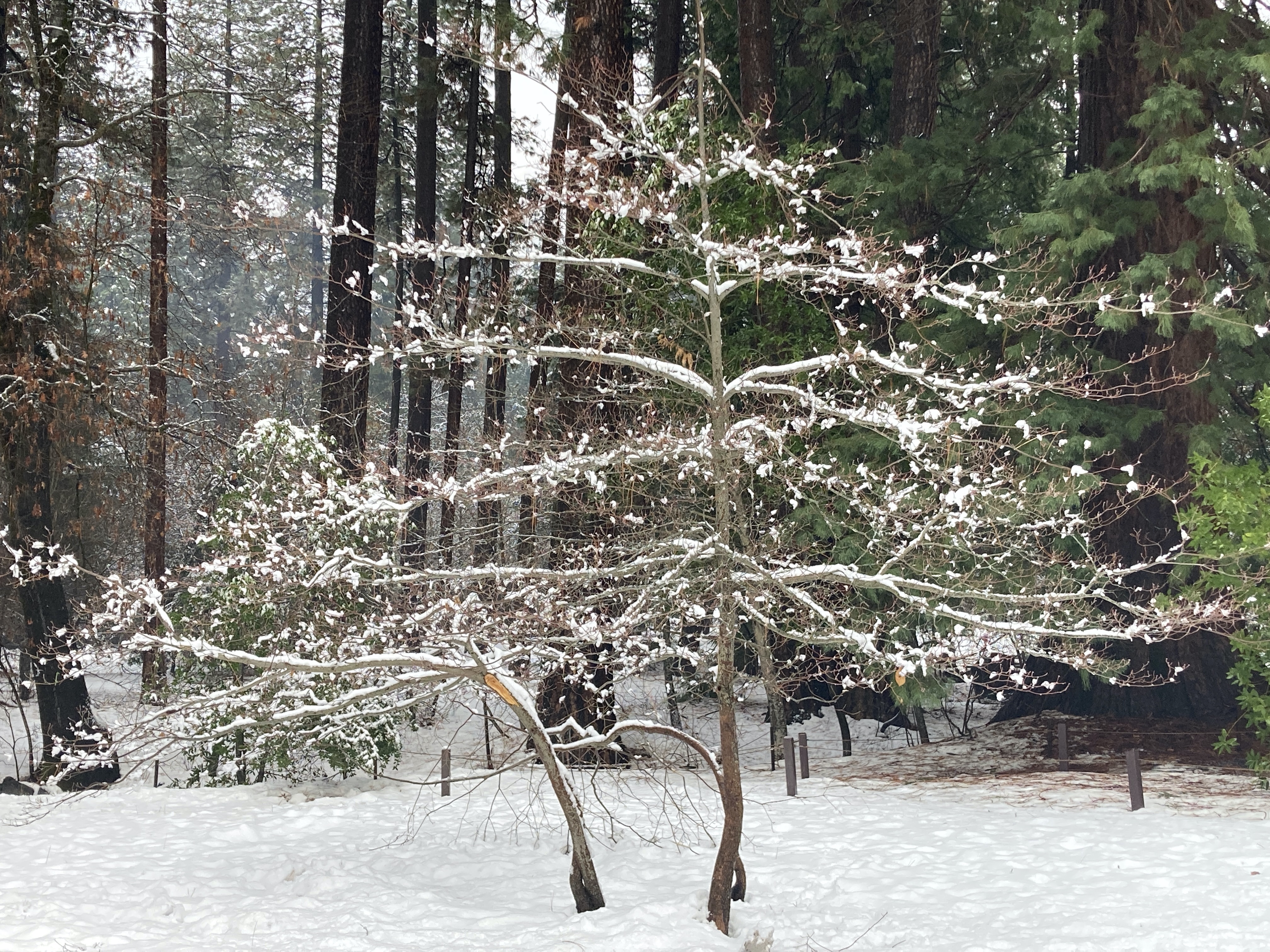 Finally, it was time to return home and we were definitely ready. With snow falling at our AirBnB location in Midpines just outside Yosemite, we barely escaped road closures as we left to make our way north.