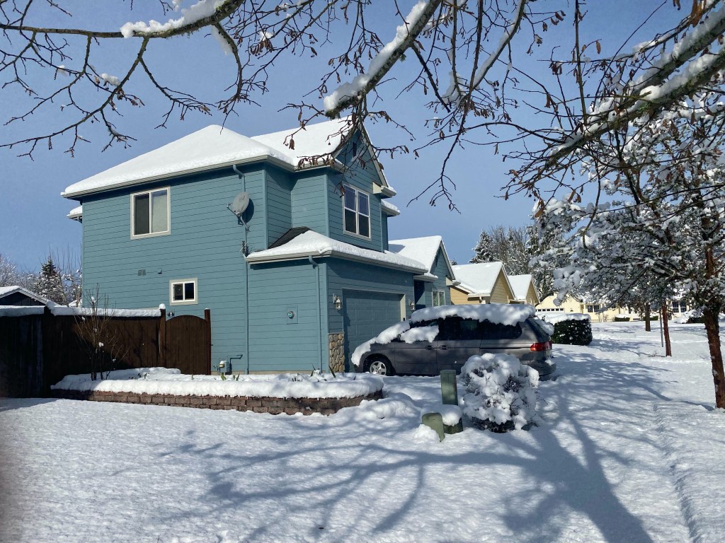 It was a bit of a white knuckle affair, but in the end Norman delivered us safely to Eugene where we arrived to find our house ensconced in SNOW! Not a very common occurrence in this area. How ironic that we missed a white Christmas right here at home.