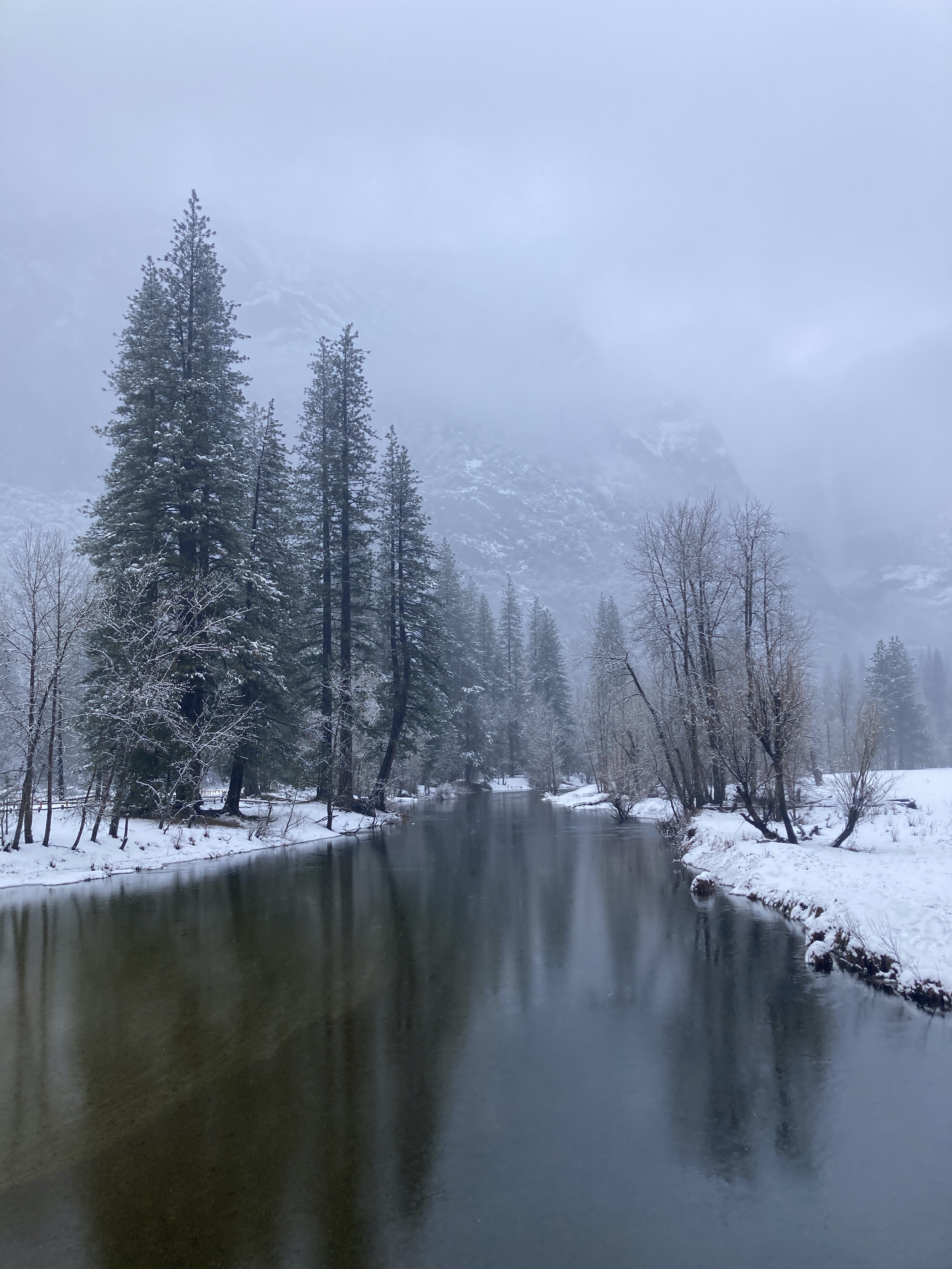 Finally, it was time to return home and we were definitely ready. With snow falling at our AirBnB location in Midpines just outside Yosemite, we barely escaped road closures as we left to make our way north.