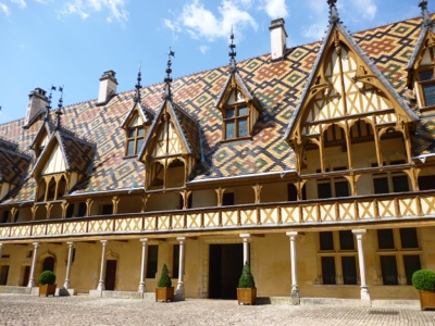 Today we started our journey in Beaune by visiting the Hôtel Dieu (a charity hospital for the poor) built by the wealthy chancellor of Burgundy, Nicolas Rolin, near the end of his life as a gift to the citizens of Beaune. During the Dark Ages, the plague devastated the population and 3/4 of its citizens were impoverished. For the poor, the Hôtel Dieu, was a place to go to die, free of charge. For the wealthy, in a separate section of the hospital, one could receive better care and higher odds of surviving “The Black Death”. For over 500 years, the hospital became established as one of the most important centers in the region for the treatment of the ill and did so until 1971. The Hôtel Dieu was a remarkable place and served its purpose well.