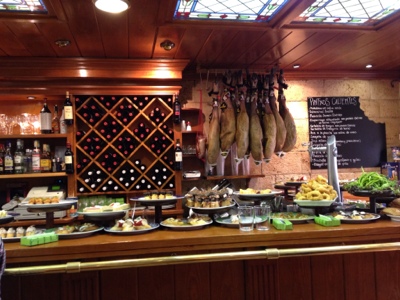As one might imagine, planning a vacation of this length requires serious research into lodging, transportation, eating, and sight seeing. I feel very lucky that driving (while it can be and is stressful at times) is mostly my responsibility. Cheryl is the ultimate organizer and tourist information agent. She is ALWAYS checking, double checking our destinations as well as finding out all about the places we are about to visit. When eating out in France, the custom is similar to eating out back home, be it restaurant or cafe. Spain has quite a different tradition. In Northern Spain, pinxtos are similar to the tapas offered in bars and cafes in the southern part of the country. The Basque spelling uses “xt” in place of the Spanish “ch” in many words such as pinxtos (peen-chos). A great variety of these “hors d’oeuvres” line the counters of bars and cafes. Many bars have special pinxtos (the specialty of the house) that define that cafe/bar’s offerings. Upon entering a cafe, just ask for a plate, select what you want to try, and enjoy it with a beer (usually only one kind in smaller bars and cafes) or a local wine or cider. The idea is to have one or two pinxtos at one bar, then move on to another bar to try another one or two and so on. This is exactly what we did in San Sebastian. It was a great experience not just for the great variety of pinxtos, but to get into the mix of the local culture — listening to the banter of locals exaggerating stories or poking fun at each other. As one would expect, Basque (actually called Euskara) is the primary language here, and when you hear it spoken, there is no other language to which you can equate it. Luckily, Spanish is the primary language in everyday business establishments but you can also hear French, Italian, German, English sprinkled here and there.