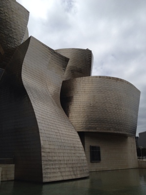 Over the years I have heard much about the Guggenheim Museum in Bilbao so when we decided to include the Basque country in our travels, I knew we had to go there. For the average person, going to an art museum can be intimidating. However, when you are married to an artist, visiting art museums becomes a unique experience because you have at your fingertips a more educated perspective than the typical viewer would normally have at his/her disposal. It is wonderful to have someone who can explain the process of creating a particular piece of art or its relationship to a certain genre. It’s like having your own personal museum curator by your side. What I really appreciate about my husband’s perspective on art is that it’s very practical and down to earth. He has taught me that the art world is made up of a very small elite group of curators, directors, historians, and critics and they are the ones who decide what gets displayed and why… AND, that it’s not necessary to like the work they have chosen to hang in a particular gallery. It’s up to the individual to decide what he/she likes. You’re not required or obligated to be impressed by what these people have selected as examples of “great art”. This came as a great relief to me and I began enjoying our forays to various museums in California and then later beyond our borders to New York, Chicago, Washington D.C., Boston and, more recently, to France. So it was with the Guggenheim in Bilbao.