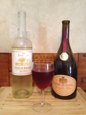 Pour the Crème de Cassis into a wine glass. Add the dry white wine. Garnish with a lemon twist.