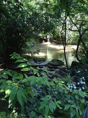 THURSDAY we sought out one of many hidden gardens of Paris. Thanks largely to former president Jacques Chirac who served as mayor of Paris for 18 years, there are over 400 gardens, parks, squares, and woods. He endeavored to make this his legacy to the city especially turning small hidden, out-of-the-way places into green havens of peace and tranquility. We explored the Vallee Suisse garden near the Palais Decouverté — smaller than we expected but definitely a great escape for Parisians who need a brief respite from the city sights and sounds. From there we walked to the Tuilieres Gardens to visit the Musée Orangerie, another museum mainly dedicated to Monet. In fact, he designed the space specifically for the work there on display. The museum consists of two large oval galleries each featuring four extremely large canvases titled Water Lilies that Monet painted of his gardens in Giverny from different perspectives. Each one is unique, some appealing more to one viewer than another. We found our personal favorites and savored them for a time.