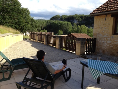 Pros: spacious with large living area and open kitchen (including gas stove which we prefer), carpeted floors (a welcome relief), lots of windows all around for great light and circulation, private outdoor terrace with BBQ, table, padded lounge chairs, and umbrella plus a swimming pool shared among the gîte guests. Oh, and lots of English TV channels so we were finally able to follow the Tour de France. Also, the location is perfect for exploring all those wonderful Perigord sites from the historic Roque St. Christophe right across the road to the famous Lascaux caves and every place in between. It is surrounded by prehistoric sites and endless grand castles and chateaus. The area is full of interesting and varied things to see and do. Twice we enjoyed the easy, convenient, and inexpensive opportunity to see the sights by canoeing down one of the main rivers.