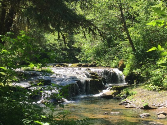 The park is located in the foothills of the Cascade Mountains. Hikers are surrounded by a dense forest of both deciduous and evergreen trees. Descending to the bottom of the canyon, waterfalls seem to appear around every bend flowing over the rocky canyon walls.
